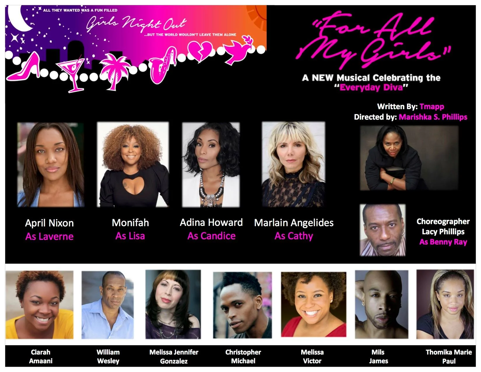 06.27.2016 Sometimes I get to do things out of the normal box I am put in! Here I am as a vulnerable mom going through divorce who is the everlasting fixer of all things broken. The staged reading FOR ALL MY GIRLS was a great success, now going into full production, dates/venue tbc, in Fall 2016. I also got to play opposite these amazing ladies, R&B stars, Monifah Carter and Adina Howard, and theater superstar April Nixon.