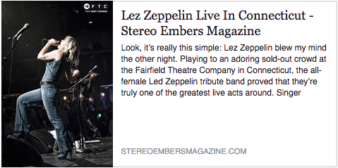 12.16.16 and 12.17.16 Two amazing nights with the ladies who rock Lez Zeppelin led to an amazing review by Alex Green on Stereo Embers Magazine. THANK YOU! Click the image for more.